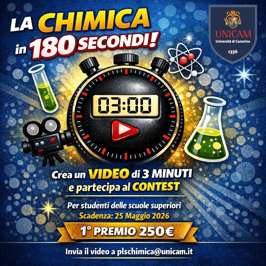 L’Università di Camerino – Sezione di Chimica, con il supporto del PLS Chimica, lancia un contest video per promuovere la chimica come scienza centrale per la vita, la tecnologia e la società.